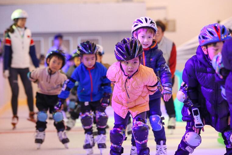 2021年11月19日、湖北省襄陽市の襄陽市スポーツセンターにある楚星スケート場でスケートの練習(xí)をする子供たち(楊東/人民図片)。