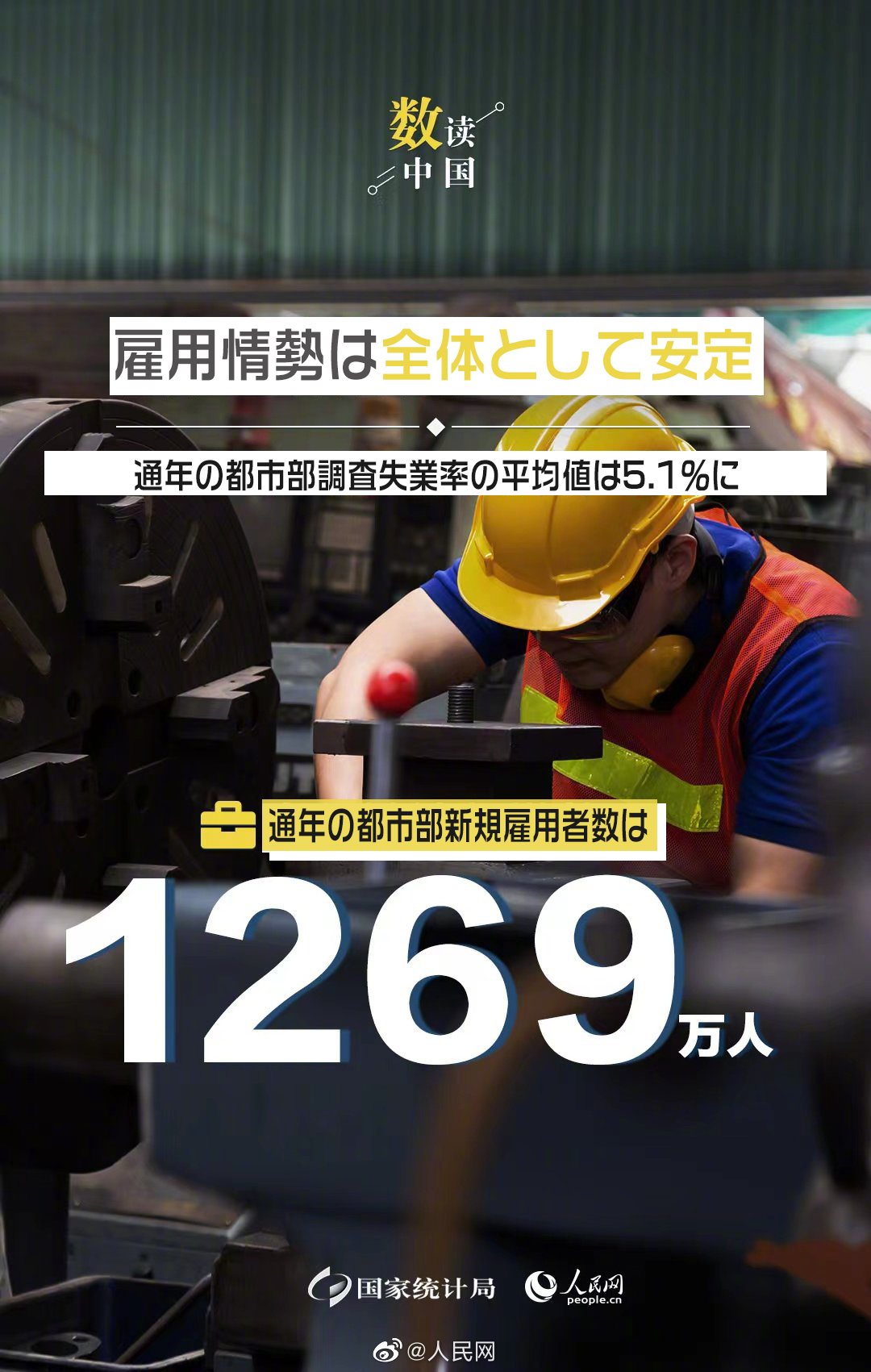 21年中國都市部の新規(guī)雇用者數(shù)1269萬人 失業(yè)率が低下