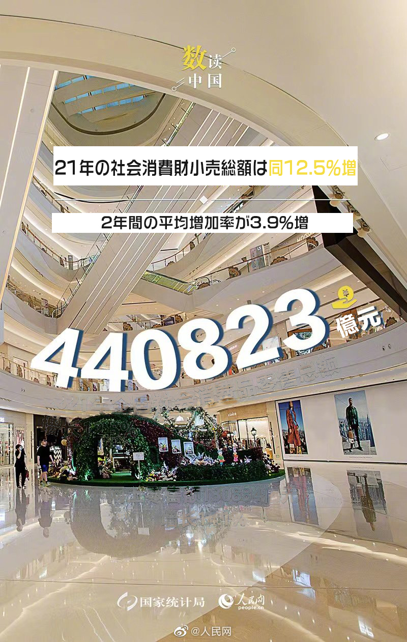 國(guó)家統(tǒng)計(jì)局が17日、2021年の社會(huì)消費(fèi)財(cái)小売総額に関するデータを発表した。統(tǒng)計(jì)によると、21年の社會(huì)消費(fèi)財(cái)小売総額は前年比12.5%増、2年間の平均増加率が3.9%増の44兆823億元(1元は約18.0円)となった。そのうち自動(dòng)車(chē)を除いた消費(fèi)財(cái)小売額は前年比12.9%増の39兆7037億元だった。物価要因を考慮した21年社會(huì)消費(fèi)財(cái)小売総額の実質(zhì)増加率は同10.7%増だった。人民網(wǎng)が伝えた。