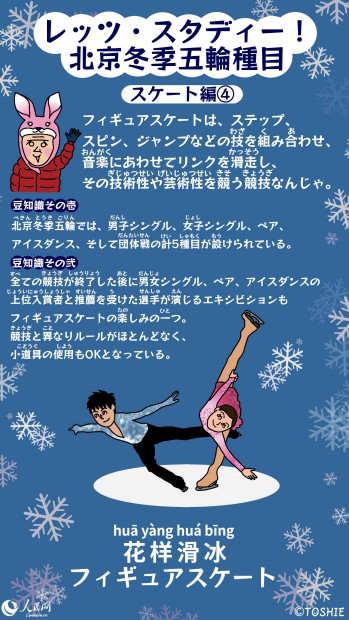 2022年2月4日から中國の北京で開催される北京冬季五輪。その開會に先立ち、人民網(wǎng)では冬季五輪の計(jì)7競技と15種別を「イラストで知ろう!イマドキ中國」でおなじみのキャラたちが中國語と日本語で紹介。普段はあまり觸れることのないこうした競技名などを観戦前に予習(xí)していこう!