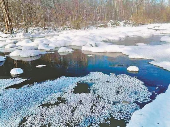 中國で「一番寒い」場所である黒竜江省大興安嶺地區(qū)呼中區(qū)の林業(yè)局が管轄する呼源林場には、氷點下45度の極寒になっても凍結せずに、水が流れ続ける川がある。こうした川では、水面で生じた気嵐が木に付著し凍結して樹氷となり、ファンタジックな景色が広がっている。また、水面上に出ている石には、雪が積もってフカフカの綿の山のようになり、まるで水面に生えたマッシュルームのようにも、蒸しあがったばかりの肉まんのようにも見える。黒竜江日報が報じた。