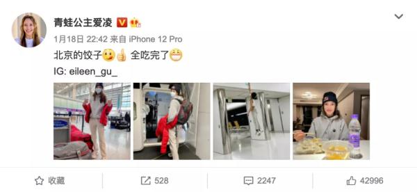 アイリーン?グー選手は以前、取材に対して、「冬季五輪は中國(guó)の春節(jié)(舊正月、2022年は2月1日)と重なっているので、餃子が食べたい!」としていた。