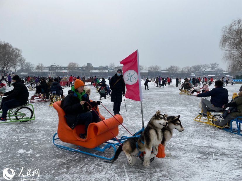 今では池に自由に出入りして滑ることはできなくなっているが、毎年元日を過(guò)ぎた頃になると屋外スケート場(chǎng)がオープンし、冬空の下でスケートを楽しむことができる。スケートエリアではスケート靴の貸し出しもしているので、什剎海エリアの観光ついでにひと滑り!なんてこともできるし、普通の靴のまま入場(chǎng)してそりや氷上自転車(chē)で童心に帰って遊ぶこともできる。今年は新たにリアルなぬいぐるみがついた「ハスキー犬ぞり」も登場(chǎng)。まるでアラスカに旅した気分にもなれる?