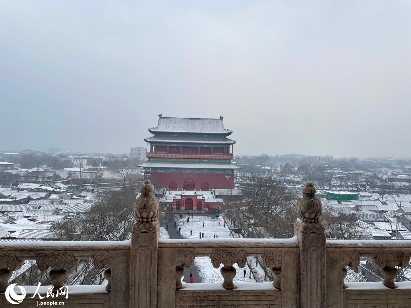 【眺める!】鐘樓から雪の鼓樓と中軸線を一望に