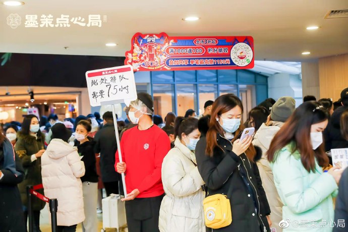 「墨茉點心局」も同年12月に、北京のショッピングモール?西単大悅城內(nèi)で盛大にオープン。店員が掲げる待ち?xí)r間を示すプラカードには「3時間」と書かれることもざらで、一番長い時では「7時間半」と書かれることもあるほどの人気だ。列に並んで買えるのならまだしも、結(jié)局買えないというケースさえ生じている。湖南省長沙市で誕生した「墨茉點心局」の商品を買おうと、多くの若者が週末にもかかわらず朝早くに布団から出て列に並ぶようになっているものの、一部の若者は「列に並んだのに買えなかった」という「がっかり感」を體験しているのだ。