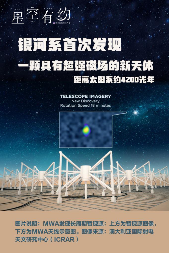 中國科學院上海天文臺の科學研究者である張翔氏とオーストラリアの協(xié)力者であるカーティン大學國際電波天文學研究センター(ICRAR-Curtin)のハーレー?ウォーカー博士ら中國國內(nèi)外の科學研究者は、MWAの宇宙観測データを分析した結(jié)果、極めてゆっくりした周期性で電波エネルギーを放出する電波過渡現(xiàn)象、すなわち銀河系內(nèi)にある極めて強い磁場を持つ新天體を発見した。