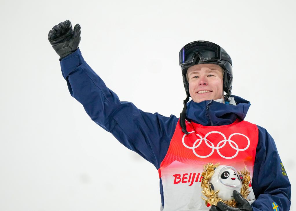 2月5日、男子モーグルで金メダルを獲得したスウェーデンのバルター?バルベリ選手。(撮影?薛玉斌)