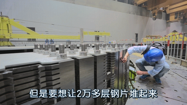 この2萬層超の電磁鋼板が不均一?不均等であれば、回転子全體の重量が不均一になる。そうすると、高速回転時の大きな遠心力により関連部品が壊れ、発電機全體の安全が脅かされる。しかし2萬層超の電磁鋼板を均一?均等に積み重ねるためには、各層を非常に均一?均等にしなければならない。これは非常に難易度の高い技術(shù)だ。