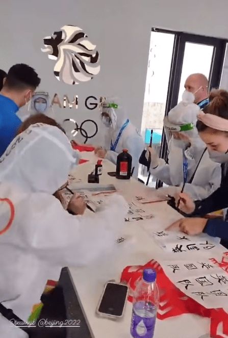 冬季五輪は春節(jié)の時期とも重なったため、選手たちはボランティアと共に、毛筆を使い、春聯(lián)(春節(jié)に家の玄関などに貼る縁起の良い対句が書かれた赤い紙)作りを體験している。あとは餃子を包むことさえできれば、中國のコミュニティの春節(jié)イベントそのものといった感じだ。
