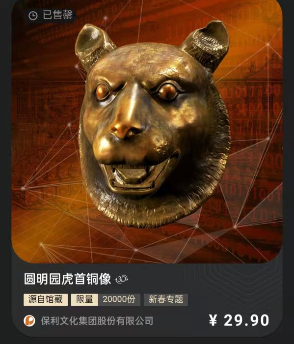 林さん(仮名)は春節(jié)(舊正月、2022年は2月1日)の大晦日に當(dāng)たる1月31日に目覚まし時計をセットして、保利蕓術(shù)博物館が発売するNFT (非代替性トークン)コレクションのデジタルアート「円明園の虎首頭像」を購入しようと待ち構(gòu)えていたが、買えなかった。「殘念だった。なんとなく見ていて目新しくて面白かった。そして、虎首は円明園の重要文化財で、今年の干支もちょうど虎なので、コレクションする意義があると思って買おうと考えていた」と林さん。