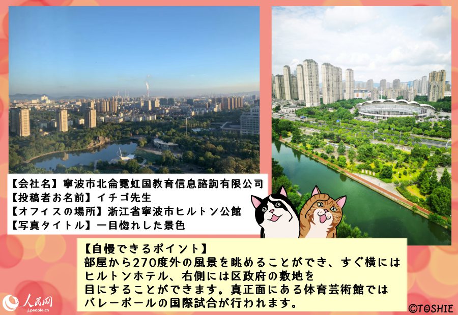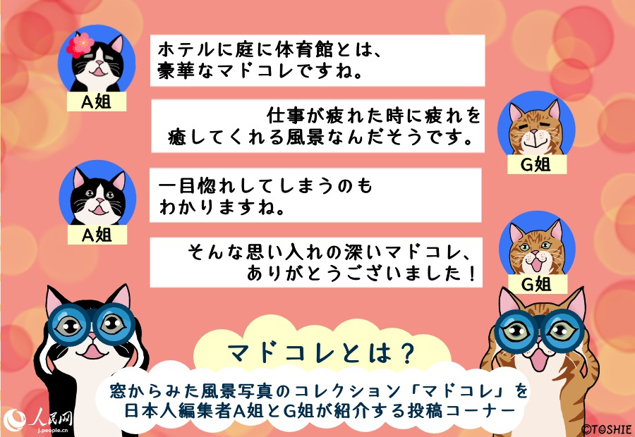人民網(wǎng)では、ウチのオフィスの窓からはこんな風(fēng)景またはこんなモノが見えるという自慢をしていただく「マドコレ(窓から見た風(fēng)景コレクション)」を毎週火曜日に掲載中!オフィスの窓からの眺めでもよし、お仕事中の窓からの眺めでもよし、とにかく窓から眺めた様子を映した寫真とそれにまつわるエピソードをご投稿ください!