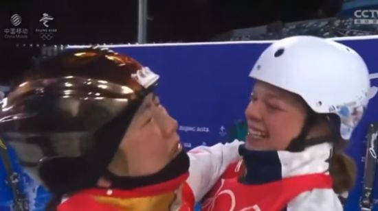 金メダル獲得した徐夢(mèng)桃選手が米國(guó)選手と抱き合う姿に多くの人が感動(dòng)