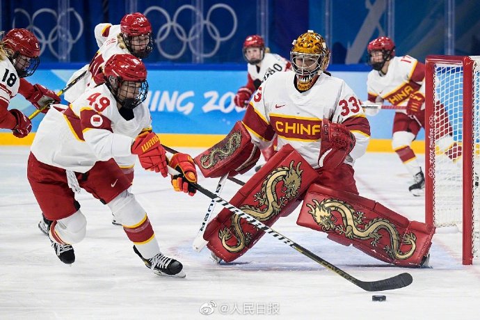 2月4日に1次リーグでデンマークと対戦した女子アイスホッケー中國(guó)代表のゴールキーパーの周嘉鷹選手は金の龍が描かれたヘルメットや足を守るパッドなど、中國(guó)の要素満載の防具で登場(chǎng)し、覇気に満ち溢れていた。