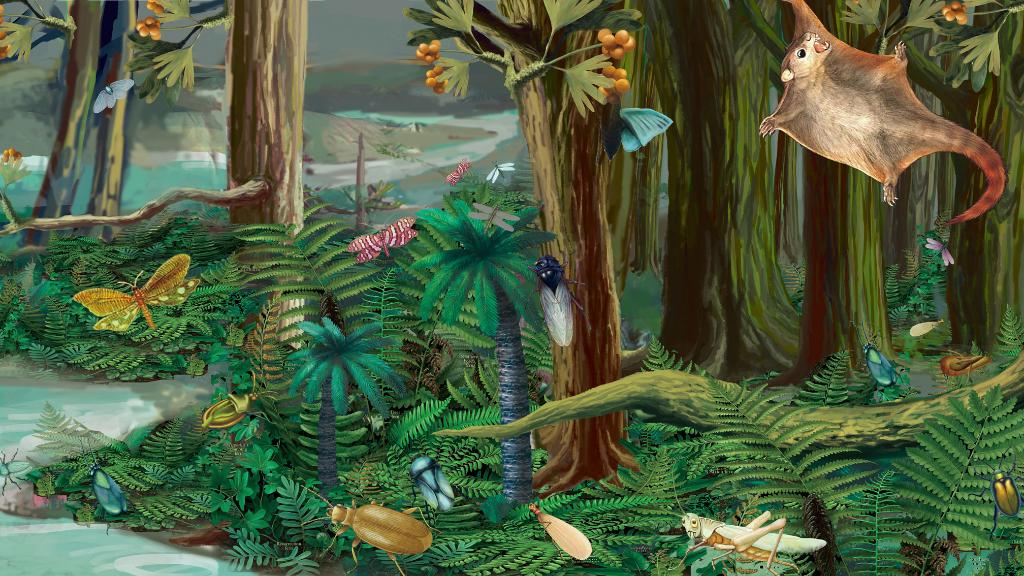 ジュラ紀(jì)の生態(tài)復(fù)元図。畫像提供は中國科學(xué)院南京地質(zhì)古生物研究所
