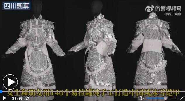 アルミ缶で鎧制作、インスピレーションはアイリーン?グー選手 四川省