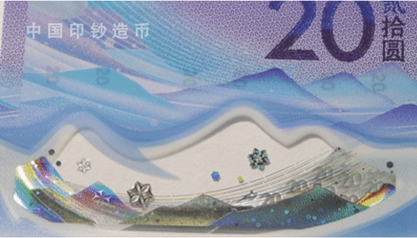 冬季五輪記念紙幣は中國(guó)印鈔造幣集団公司が設(shè)計(jì)?印刷。注意深く見(jiàn)てみると、今回発行された冬季五輪紙幣には、スノーボードをする愛(ài)らしいビンドゥンドゥンが隠されていることに気づくだろう。さらに古長(zhǎng)城、多彩で躍動(dòng)感に溢れるホログラムの雪の結(jié)晶などのデザインも隠されている。