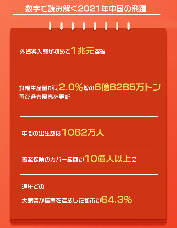 複雑な國際環(huán)境、新型コロナウイルス感染癥、異常気象など複數(shù)の挑戦に直面しながら、中國の國民経済は回復(fù)を続け、発展水準がさらに次のステージへと進んだ。新たな飛躍の1つ1つから、中國経済社會の変化がありありと浮かび上がる。