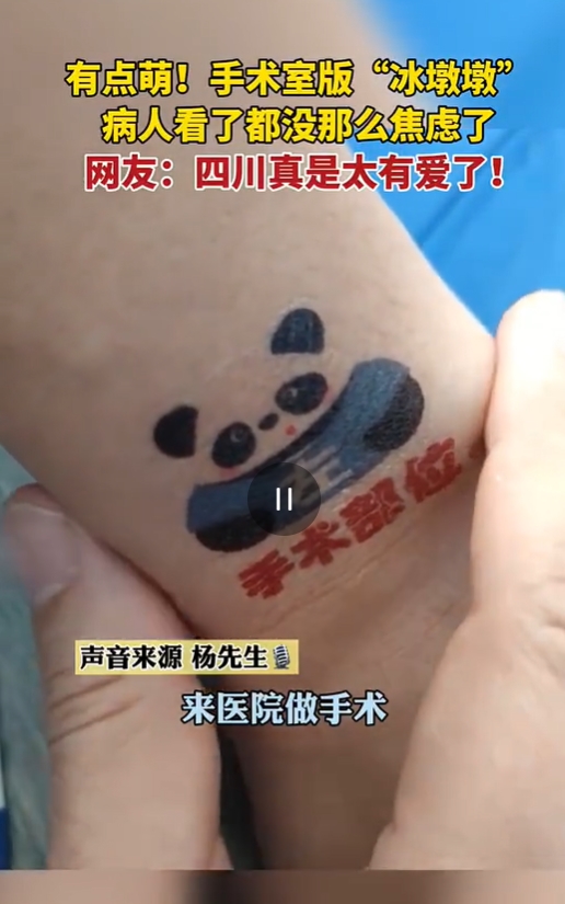 四川省に住む楊さんは最近、體に不調(diào)をきたし、病院で手術(shù)を受けることになった。手術(shù)前、醫(yī)者は楊さんの執(zhí)刀箇所に「手術(shù)部位」と書(shū)かれた特製のパンダシールを貼り付けた。シールを見(jiàn)た楊さんは、「緊張してイライラしていた気持ちがこのシールを見(jiàn)てすごく和らいだ。病院の思いやり溢れるサービスは素晴らしい」と稱賛した。(編集TG)