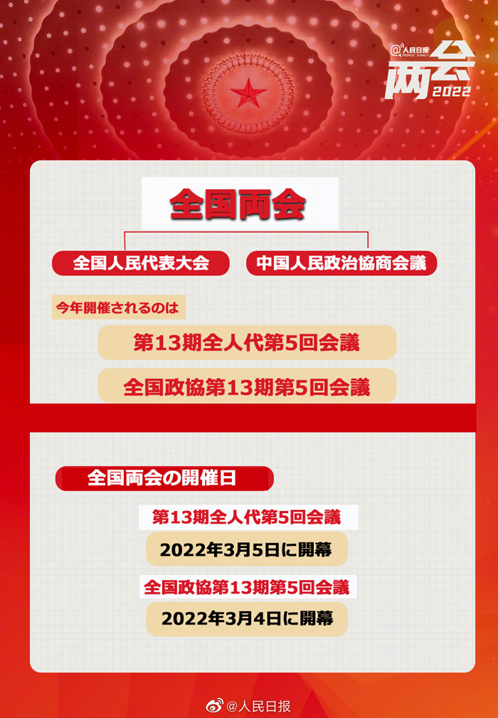全國(guó)両會(huì)の開催日