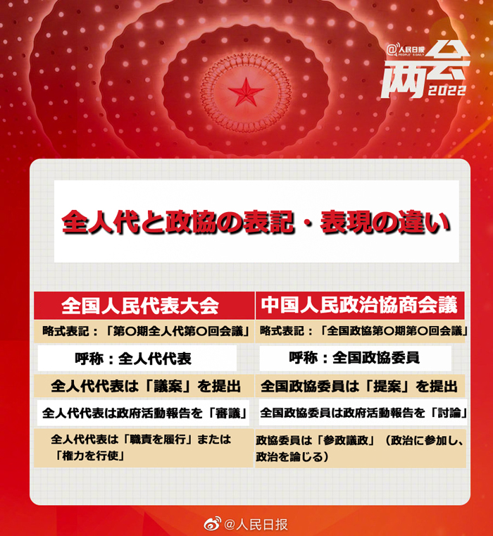 ■全人代と政協(xié)の表記?表現(xiàn)の違い