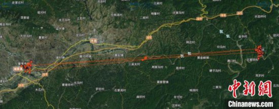 人工衛(wèi)星で記録した2022年2月における個體番號「64L」のトキの衛(wèi)星追跡記録(寫真提供?陝西省漢中トキ國家級自然保護區(qū)管理局)。