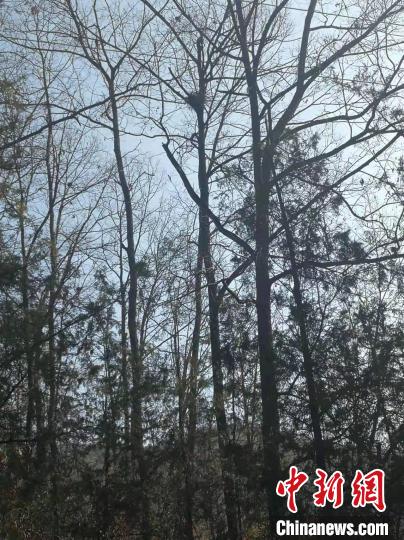 個體番號「64L」のトキが巣を作った林(撮影?慶保平)。