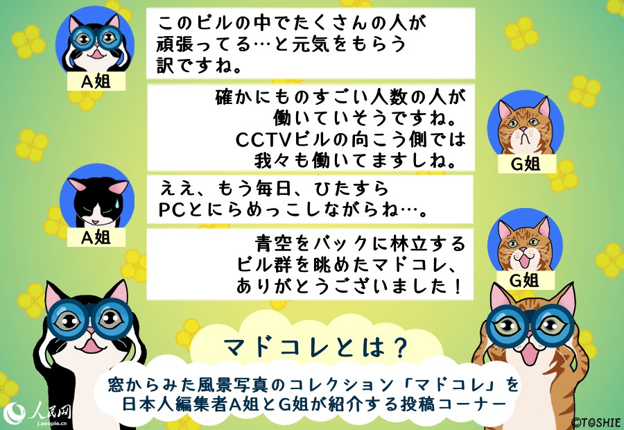 人民網(wǎng)では、ウチのオフィスの窓からはこんな風(fēng)景またはこんなモノが見えるという自慢をしていただく「マドコレ(窓から見た風(fēng)景コレクション)」を毎週火曜日に掲載中!オフィスの窓からの眺めでもよし、お仕事中の窓からの眺めでもよし、とにかく窓から眺めた様子を映した寫真とそれにまつわるエピソードをご投稿ください!
