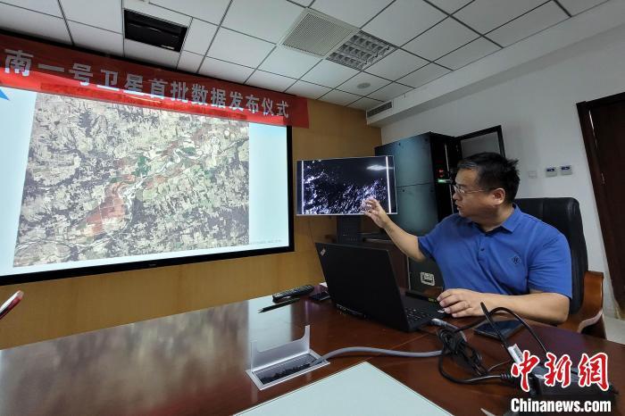 「海南1號(hào)」衛(wèi)星プロジェクトサブチーフデザイナーの王雷氏が、衛(wèi)星データの詳細(xì)な狀況について説明した。撮影?王暁斌