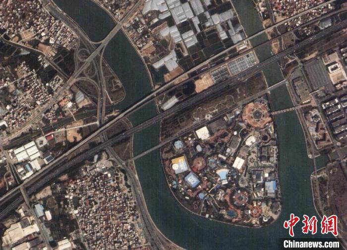廈門(アモイ)方特楽園の一帯。畫(huà)像提供は中國(guó)科學(xué)院空天情報(bào)研究院海南研究院