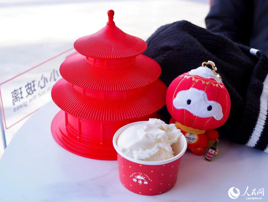 「旅するシュエロンロン」天壇?天壇拾光編。二鍋頭アイス、二鍋頭ボトルのバッジと一緒にパチリ(寫真提供?取材対象者)。