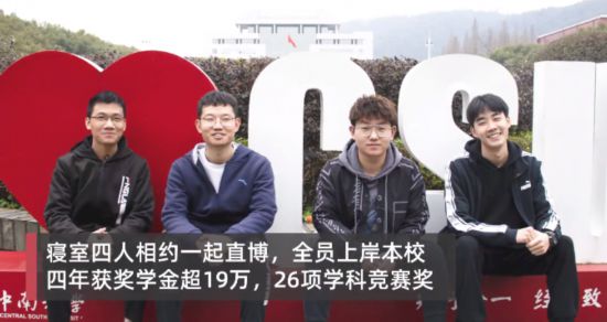 話題となっているのは劉沢一さん、隋慶開さん、荘佳鋭さん、李俊賢さんで、この4人は學(xué)生寮のルームメイト。大學(xué)1年の時(shí)に、「この大學(xué)の大學(xué)院に進(jìn)學(xué)しよう」と約束し合い、そして現(xiàn)在、彼らは全員學(xué)部を卒業(yè)し、同學(xué)院の博士課程にそのまま進(jìn)學(xué)した。大學(xué)生だった4年間、4人は日中は各人で勉強(qiáng)し、夜になると討論するなどして一緒に勉強(qiáng)してきた。そしてこれまでに奨學(xué)金合わせて約20萬元(1元は約18.4円)をゲットしてきた。勉強(qiáng)だけでなく、4人は學(xué)科コンテストや科學(xué)研究活動(dòng)にも頻繁に參加して、各級の學(xué)科コンテストで26の賞を受賞してきた。