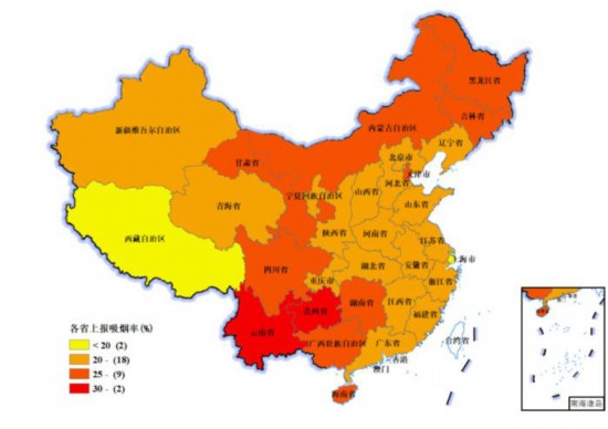 中國(guó)各地の成人喫煙流行調(diào)査結(jié)果によると、2020年、上海市と西蔵(チベット)自治區(qū)の15歳以上の喫煙率は20%未満だったのに対して、雲(yún)南省と貴州省は30%以上だった。中國(guó)新聞網(wǎng)が報(bào)じた。