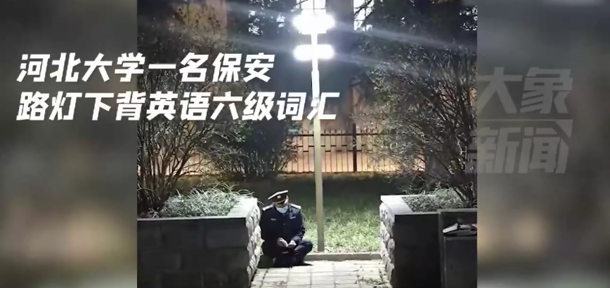 河北省にある河北大學(xué)の警備員が街燈の下で英単語を暗記する動畫が、最近ネットで話題を集めている。ネットユーザーからは、「才能を秘めた警備員さん」などと呼ばれている。「中國青年報」が伝えた。