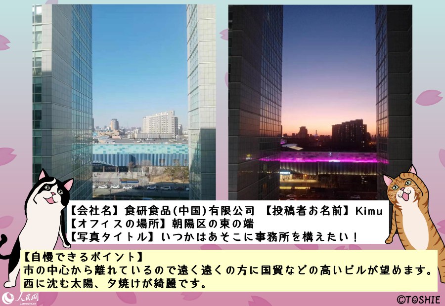 人民網(wǎng)では、ウチのオフィスの窓からはこんな風(fēng)景またはこんなモノが見(jiàn)えるという自慢をしていただく「マドコレ(窓から見(jiàn)た風(fēng)景コレクション)」を毎週火曜日に掲載中!オフィスの窓からの眺めでもよし、お仕事中の窓からの眺めでもよし、とにかく窓から眺めた様子を映した寫(xiě)真とそれにまつわるエピソードをご投稿ください!