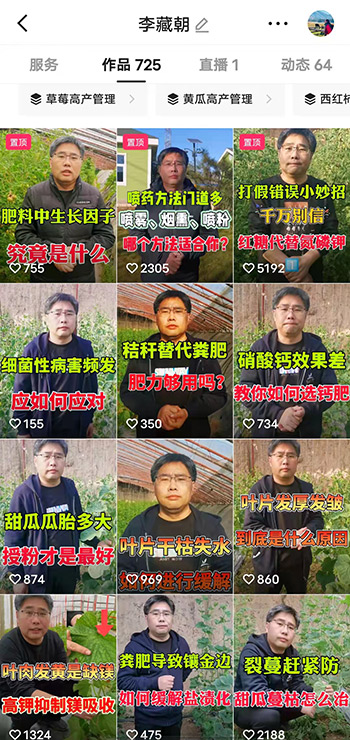 李氏は現(xiàn)在まで、ショート動(dòng)畫プラットフォーム「快手」に700本以上の動(dòng)畫を投稿しており、30萬人超のフォロワーを抱えている。また李氏は毎週?定時(shí)のライブ配信を続け、フォロワーと野菜栽培に関する問題について意見交換している。