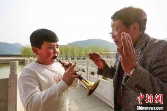 チャルメラを教える劉桂存さん(撮影?李陽(yáng))。