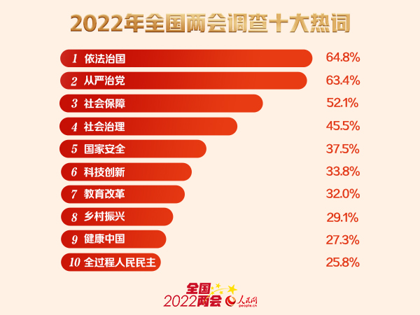 【全國両會世論調査】両會の注目度トップ3は「法に基づく國家統(tǒng)治」、「厳格な黨內(nèi)統(tǒng)治」、「社會保障」