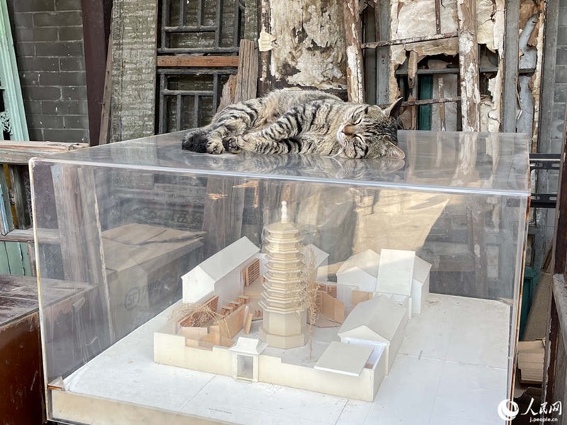 「塔の守り貓」として仕事に余念のない看板貓の「磚磚(ジュワンジュワン)」(撮影?勝又あや子)。