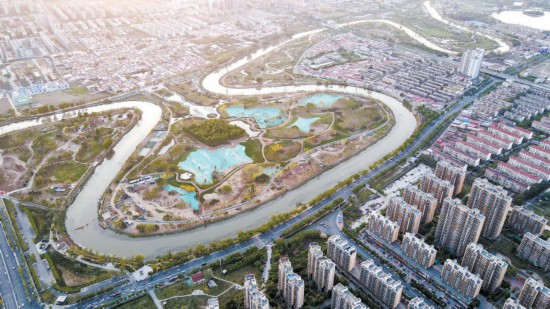 古代の人が人工的に河川のカーブを増?jiān)O(shè)して、水がゆっくりと流れるようにし、河川の排水能力を保ちながらも、船がスムーズに通行できるようにした。畫像は南運(yùn)河徳州區(qū)間徳城區(qū)(撮影?劉克政)。