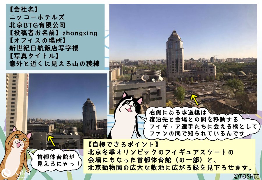 人民網(wǎng)では、ウチのオフィスの窓からはこんな風景またはこんなモノが見えるという自慢をしていただく「マドコレ(窓から見た風景コレクション)」を毎週火曜日に掲載中!オフィスの窓からの眺めでもよし、お仕事中の窓からの眺めでもよし、とにかく窓から眺めた様子を映した寫真とそれにまつわるエピソードをご投稿ください!