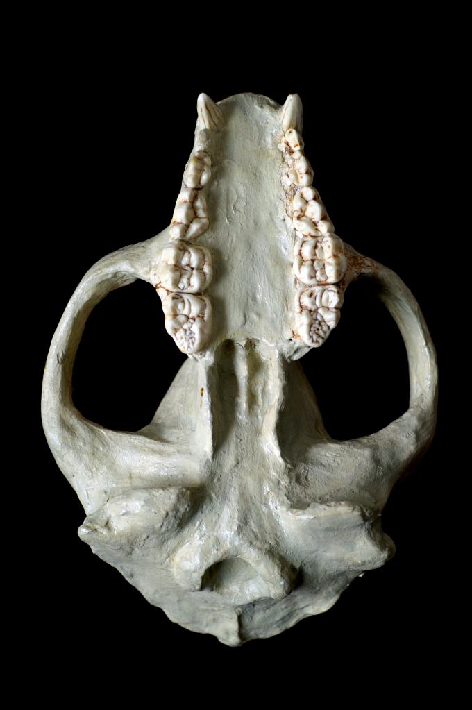 重慶市巫山県の竜骨坡から出土した小種大熊貓の化石。(重慶自然博物館が提供)