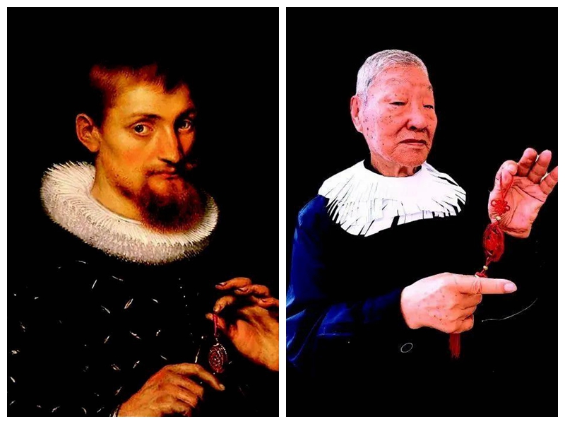 「5分もくれれば、名畫の『男性』になりきってみせる」と、柳さんはそう言って自分の部屋に戻っていった。そして、5分もしないうちに、準備を終えて部屋を出てきた。首元には白い紙で作った襟飾りをつけ、手には赤い飾り結(jié)びを持ち、表情からポーズまでバッチリ決めて、まるで作品の魂が乗り移ったかのような「神再現(xiàn)」を披露した。