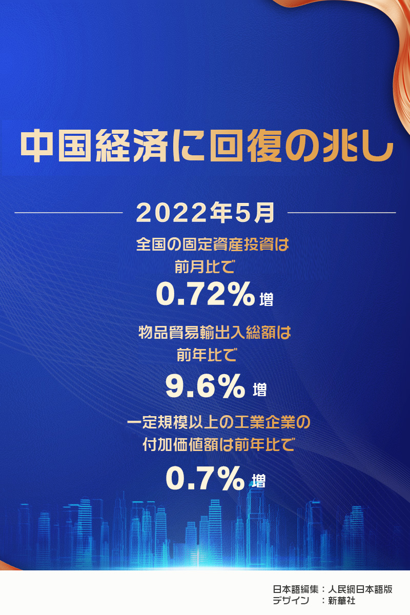1-5月、全國の固定資産投資(農(nóng)家を含まず)は同6.2%増の20兆5964億元(1元は約20円)、社會消費財小売総額は同1.5%減の17兆1689億元となった。物品貿(mào)易輸出入総額は同8.3%増加し、全國の一定規(guī)模以上の工業(yè)企業(yè)の付加価値額は同3.3%増加し、都市部の新規(guī)雇用者數(shù)は529萬人だった。