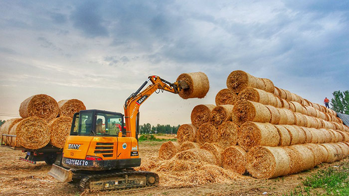麥が刈取機によって飲み込まれ、粉砕された麥わらが吐き出され、麥の粒がベルトコンベアによって輸送車両に運び込まれる。三門峽市の現(xiàn)在の小麥面積は7.6萬ヘクタールで、機械収穫後損失率が1%減ると、110萬キログラムの増産に相當(dāng)する。麥わらの梱包?回収?再利用の実現(xiàn)により、汚染を減らせるだけでなく収入も増やしている。