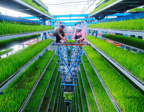 河南省信陽市光山県空中立體スマート化育苗拠點。撮影?謝萬柏