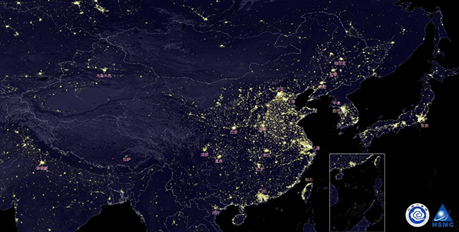 風(fēng)雲(yún)3號(hào)E星の夜間照明製品(畫(huà)像提供は國(guó)家衛(wèi)星気象センター)