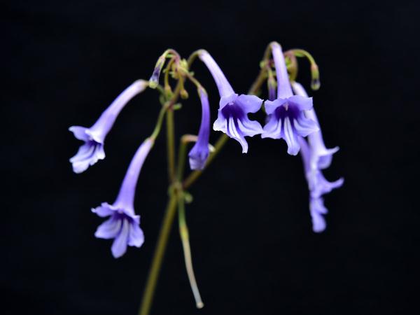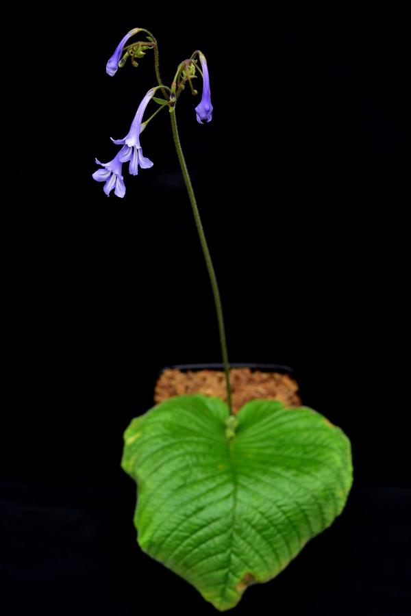 辰山植物園の園蕓景観部のエンジニア?王琦氏は、「多年草の一種であるイワタバコの種類は非常に多く、そのうちの一つがミステリアスなストレプトカーパス?クーペリ。育つのはたった1枚の葉だけで、花が咲くのも1回だけ?;à瑔Dき終わると、種ができ、そして枯れてしまう。苗圃で栽培しているストレプトカーパス?クーペリは本當(dāng)にミステリアスだ。ふつうの植物は生長段階で、生長ポイントから葉っぱがどんどん出てくる。一方、ストレプトカーパス?クーペリはハートの形をした根元の葉腳の一部が伸び続け、大きな葉が『牛の舌』のように広がり、その長さは約60センチに達(dá)する。生長が止まると、葉脈の基部から蕾のついた莖が3‐5本伸びてくる。各莖に20個から30個ほどのラッパ狀の淡い青紫色の小さな花が咲く」と説明する。