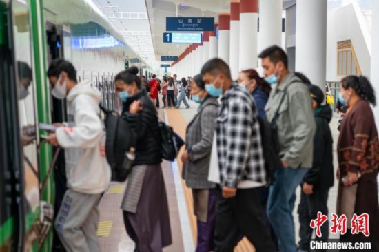 山南駅に著いた復(fù)興號(hào)に乗り込む乗客(撮影?江飛波)。