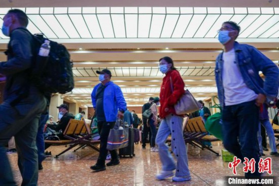ラサ駅から山南やニンティに向かう復(fù)興號(hào)に乗るために改札口に向かう旅客たち(撮影?江飛波)。