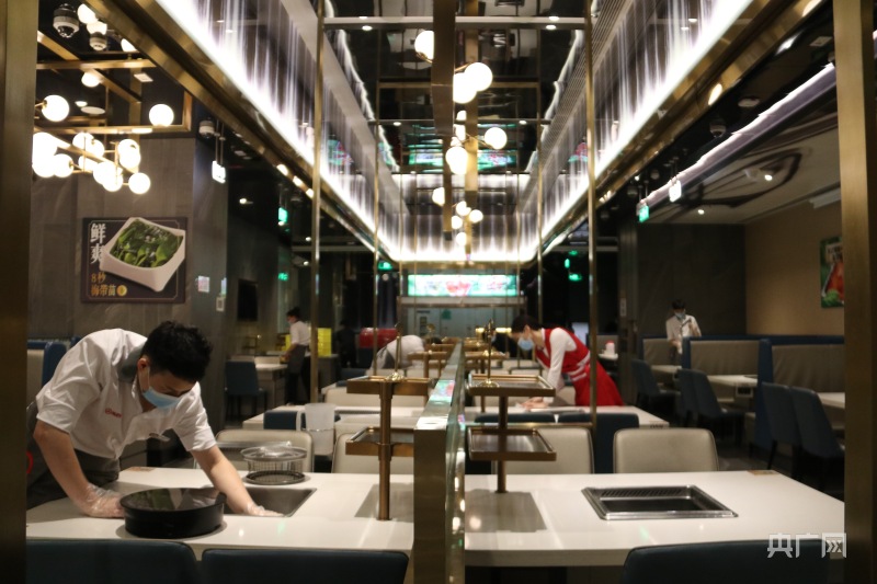 上海が店內(nèi)飲食を秩序よく再開した初日、一部の店は予約がいっぱいになり、そのうちの1つの海底撈上海大華店は普段の金曜日の分量の食材を用意してこの日に備えたという。